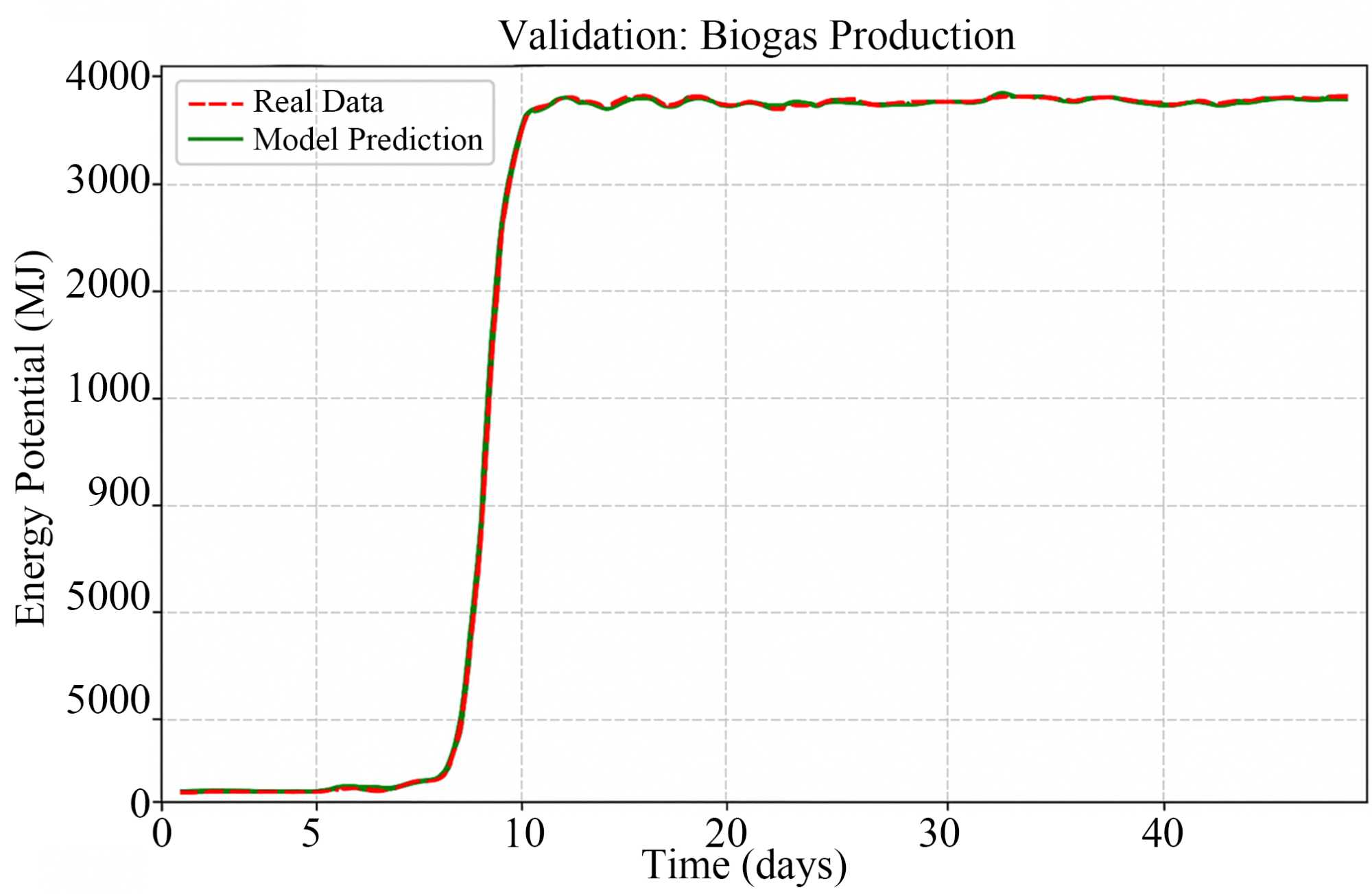 The anaerobic digestion model uses Monod kinetics to model the biological break down of organic waste with parameters such as, maximum specific growth rate, half-saturation constant, yield coefficient and decay coefficient defined. The system is solved using the ode 45 solver over 60 days. Biogas production is calculated based on biogas yield and methane content and the energy potential was calculated.