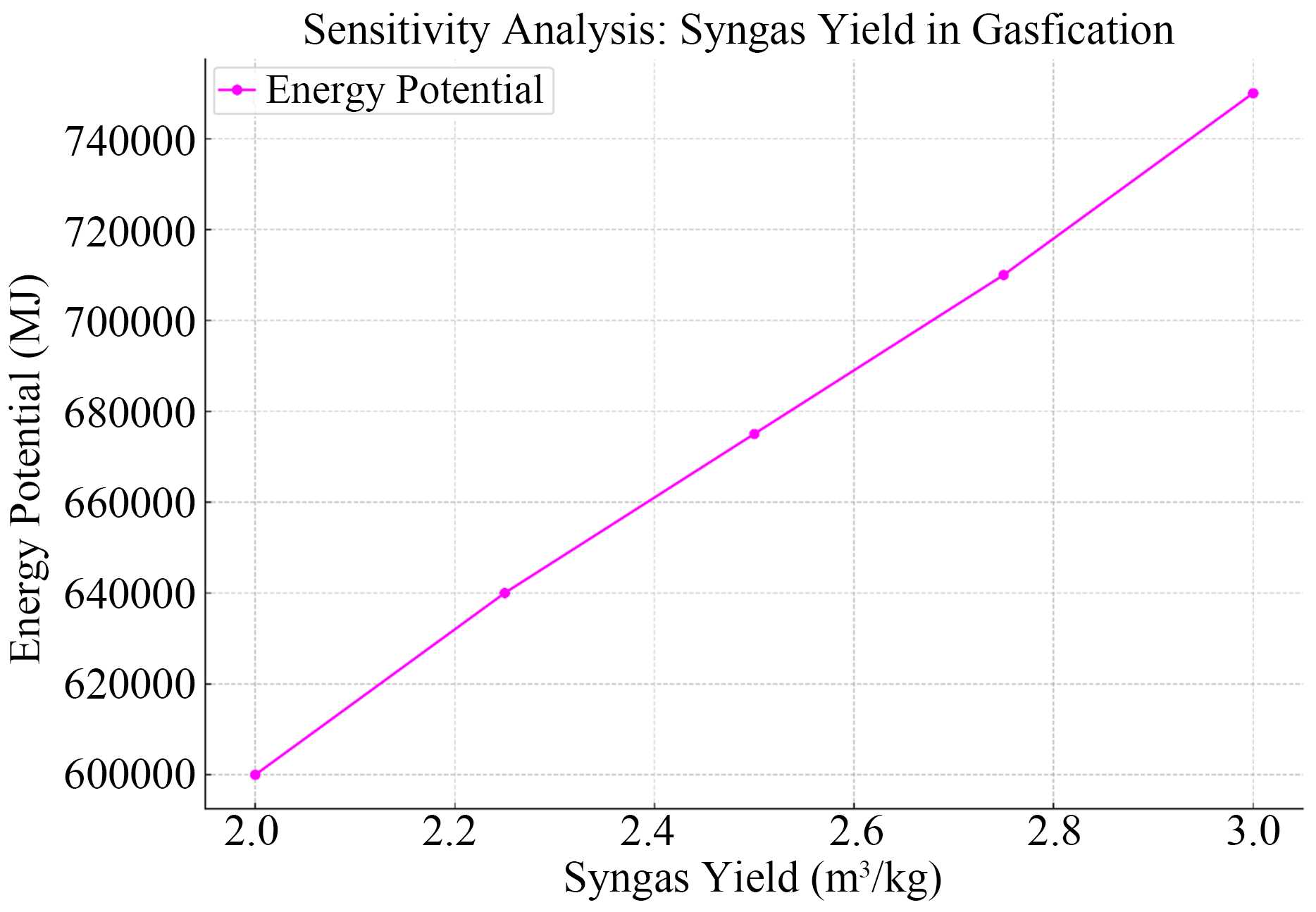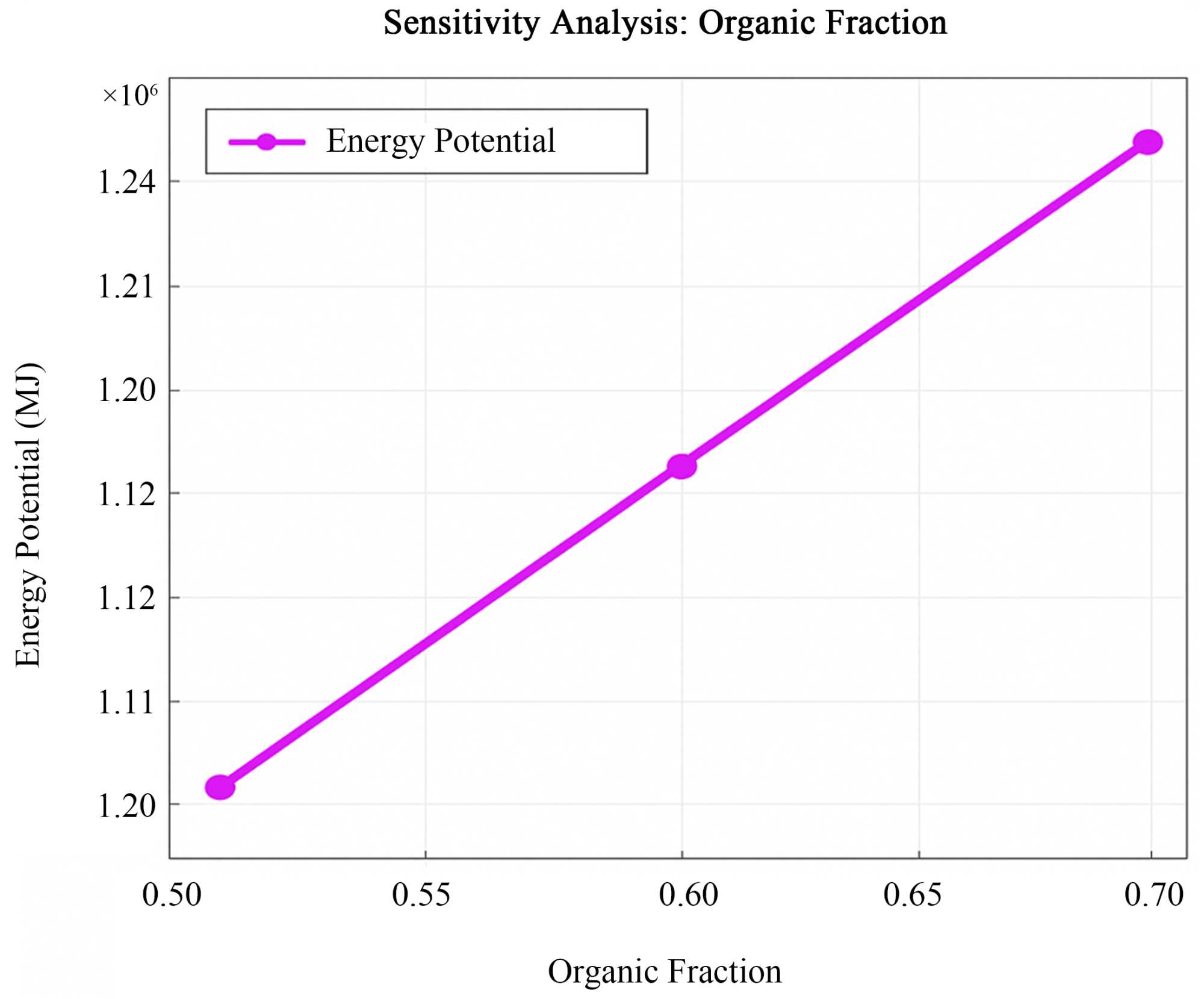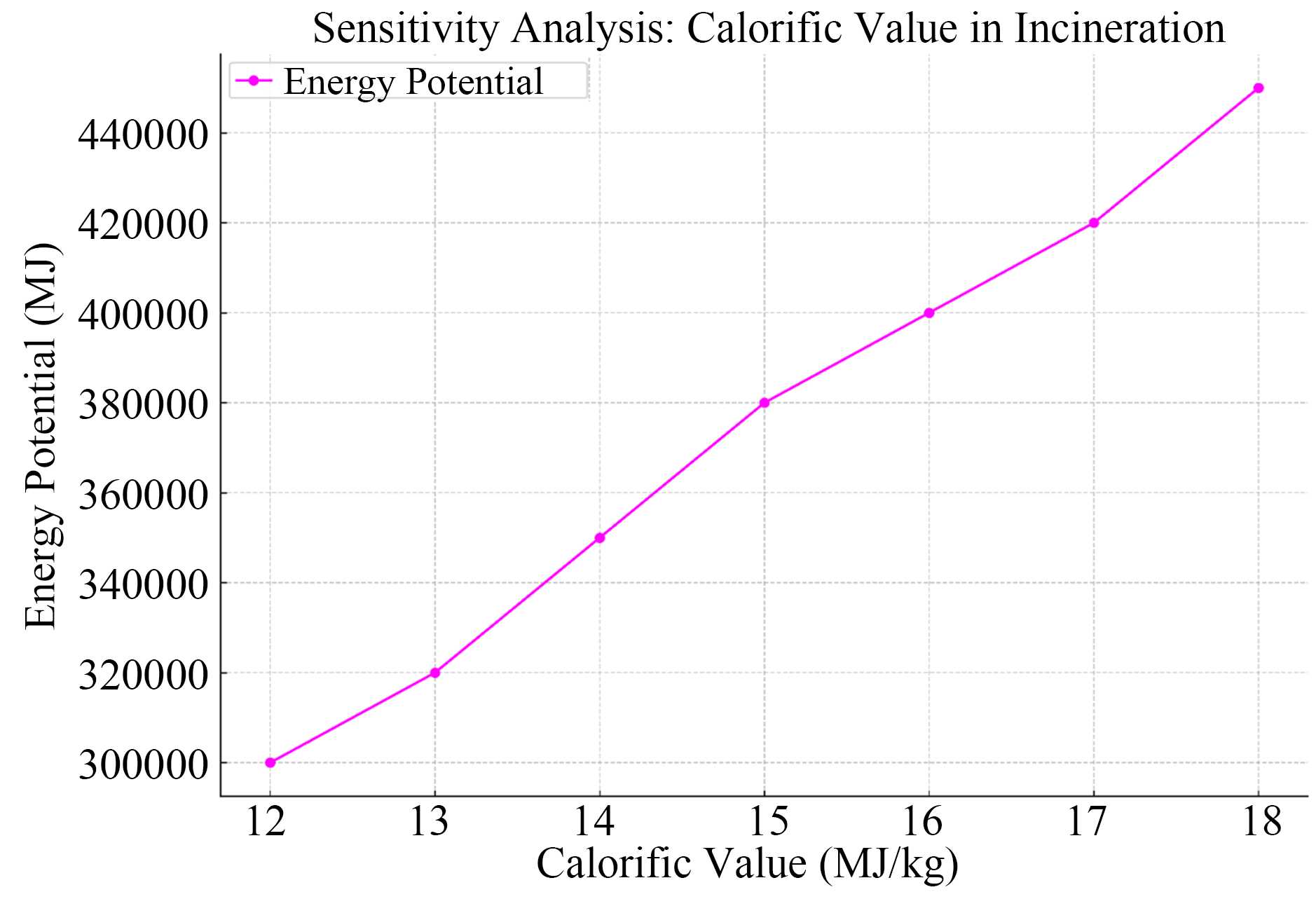 Sensitivity analysis is a crucial instrument for comprehending the variations in essential input parameters that characterize the potential for energy recovery. The main characteristics evaluated are waste composition, calorific value, waste to energy technology efficiency and moisture content. This entails examining the models responses to these alterations to determine most influential elements impacting energy recovery [8] and [23].