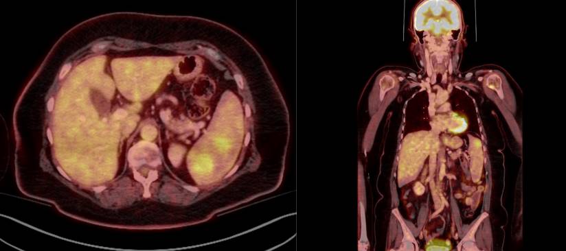 Figure 1. FDG-PET/CT showing hypermetabolic lesions in the spleen.
