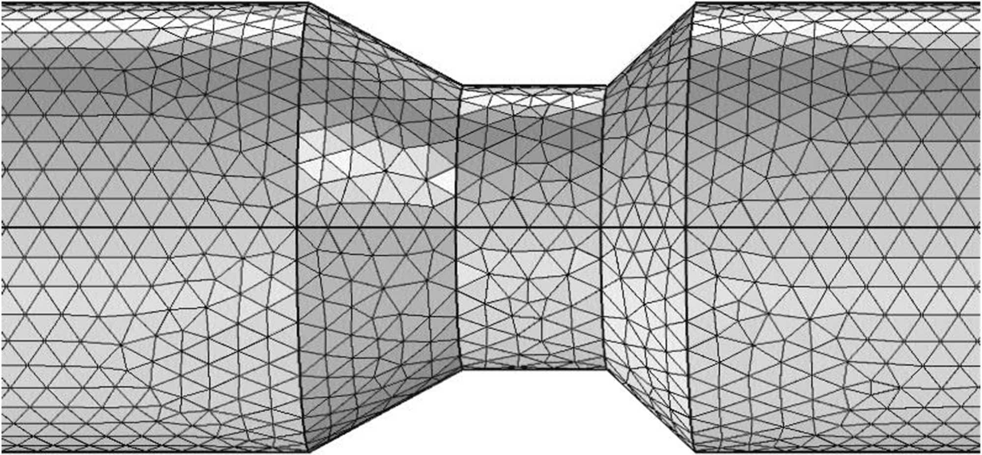 A stenosed model of three-dimensional geometry (Figure 1) for 45%, 60%, and 75% stenoses has been considered here to investigate the pulsatile atherosclerotic hemodynamics in mimics blood flow. The directions of the horizontal and vertical axes are shown by the coordinates X and Y. The length of pre-stenosis is 3D and the post-stenosis is 10D. The parameter D indicates the artery diameter. The laminar and incompressible flow is assumed for the investigated trapezium model of stenosis.