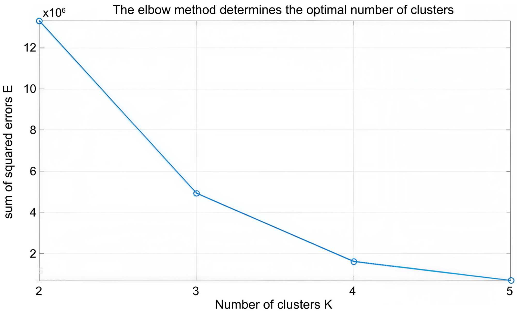 The elbow method is employed to determine the optimal number of clusters k. This method involves computing the sum of squared errors (SSE or E) for different values of k, and plotting the k-E curve. The point at which the curve forms a distinct “elbow” is considered the optimal value of k. The specific steps are as follows: Run the K-means algorithm for k = 1, 2, 3, …, m (m is the preset maximum cluster number) respectively;