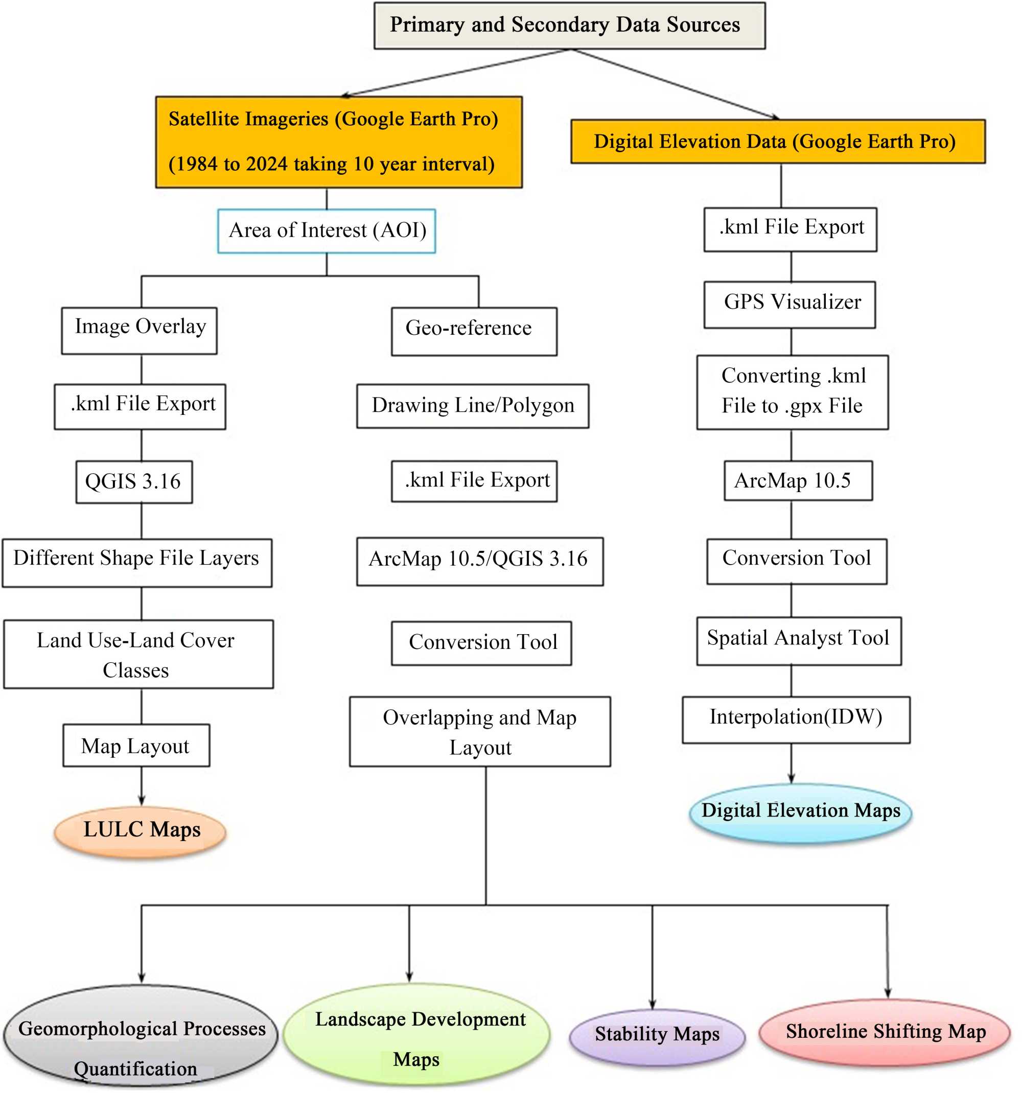 The utilization of Geographic Information Systems (GIS) and Digital Elevation Model (DEM) data retrieved from Google Earth Pro facilitates the analysis of spatial data, including changes in elevation and landform dynamics.