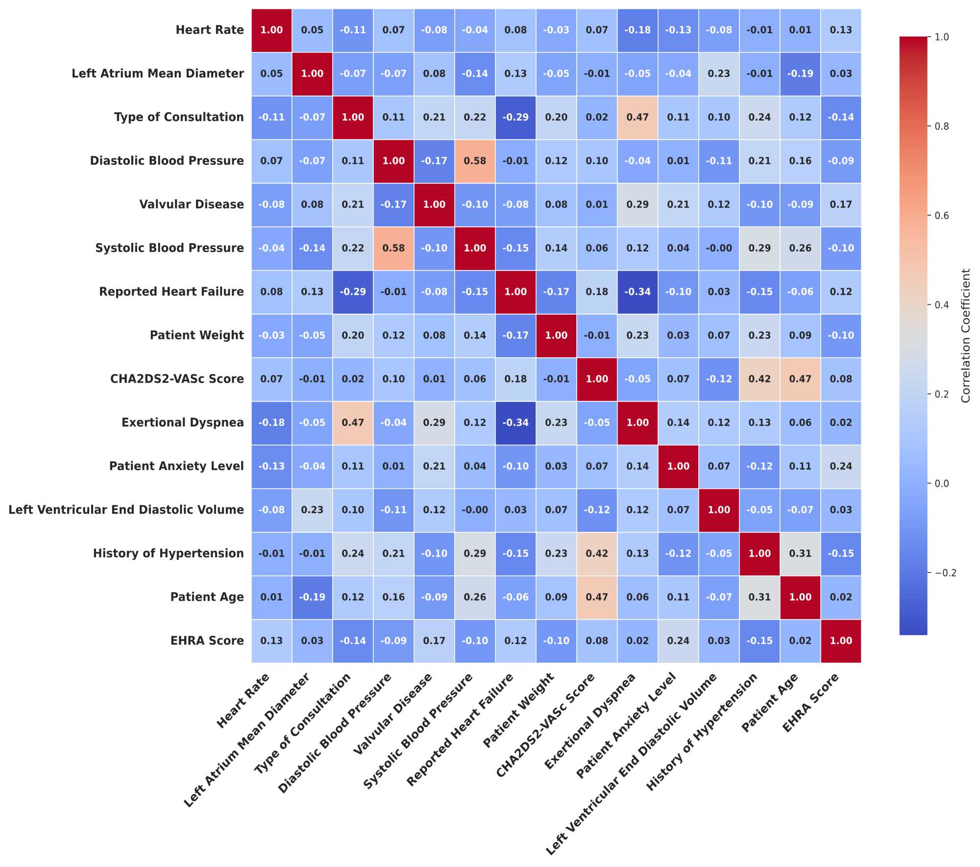 SHAP-based interpretation further validated these models by highlighting the clinical relevance of predictors such as heart failure, EHRA score, and heart rate. These variables align with established medical indicators, strengthening the interpretability and trustworthiness of the predictions.