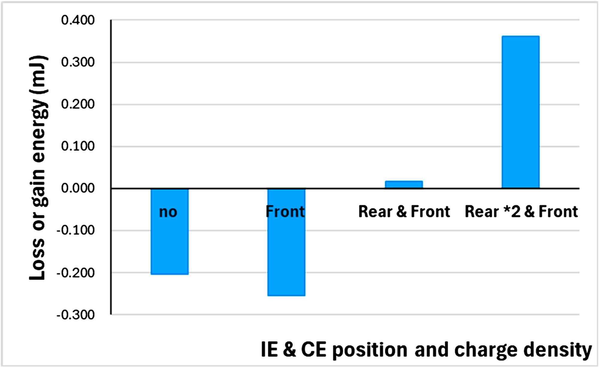 Consequently, the internal energy emitted from the front and rear CEs, which accelerated the charge carriers, increased from +18 to +361 μJ.