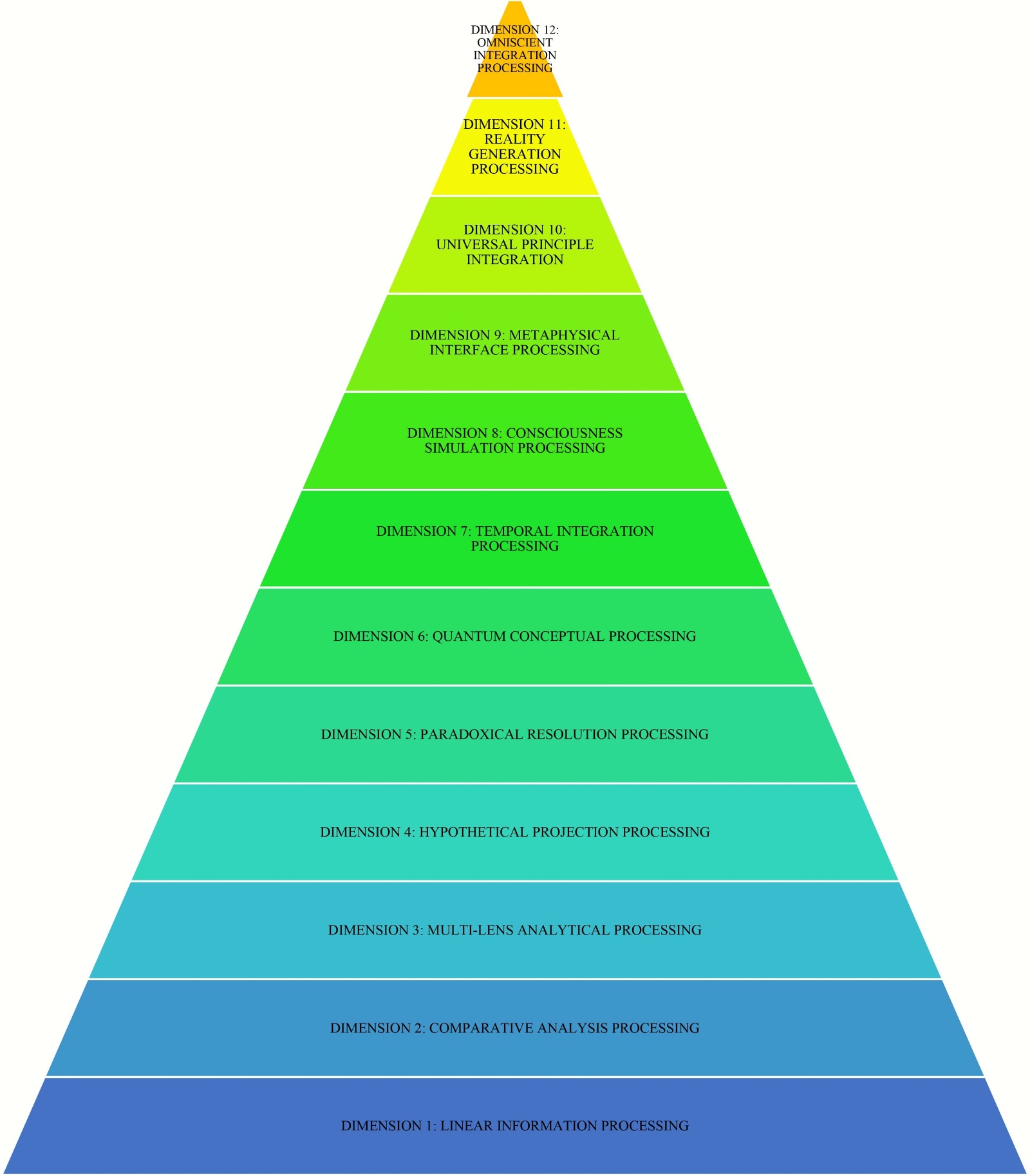 Simultaneous processing across all previous dimensions with perfect synthesis Processing Demand: INFINITE Current AI Capability: None Example: Complete understanding across all dimensional levels with perfect integration Key Cognitive Demand: Omniscient transcendence with perfect synthesis |