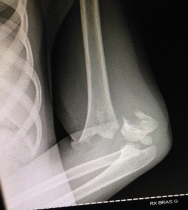 Figure 2. Radiological images depicting a type III FSCH as classified by Gartland in an 8-year-old patient who underwent surgical treatment involving X pinning (Department of Pediatric Surgery, CHU ME).