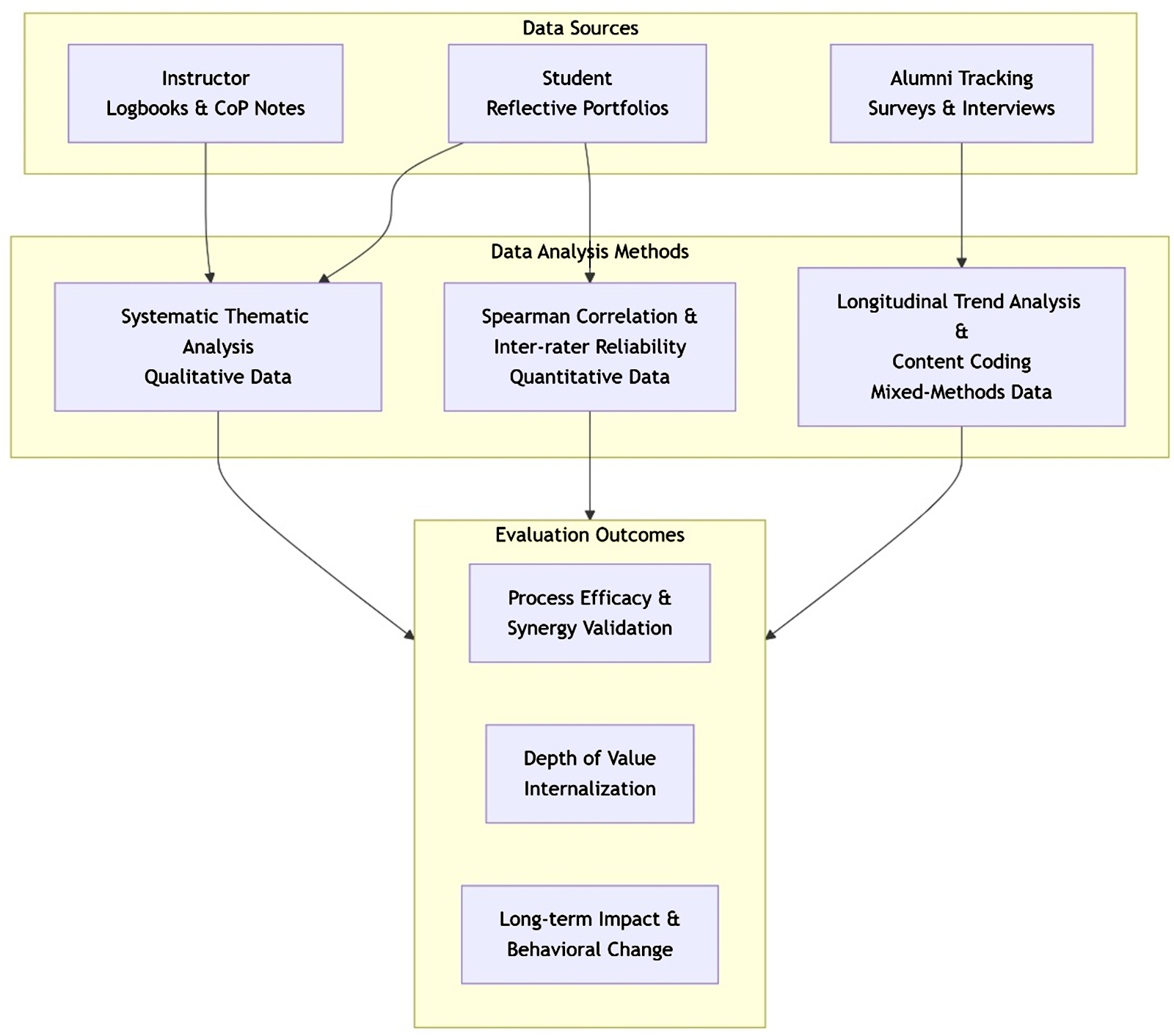 In this study, “ideological awareness” refers to students’ understanding and identification with national core values, social responsibility, and civic morality. “Value cultivation” denotes the process through which students internalize ideological principles as personal convictions and behavioral guides via curricular activities and reflective practice. These constructs are operationalized in the integrated assessment rubric under the dimensions of “Ethical Reasoning & Social Awareness” and “Value Internalization & Civic Identity.”
