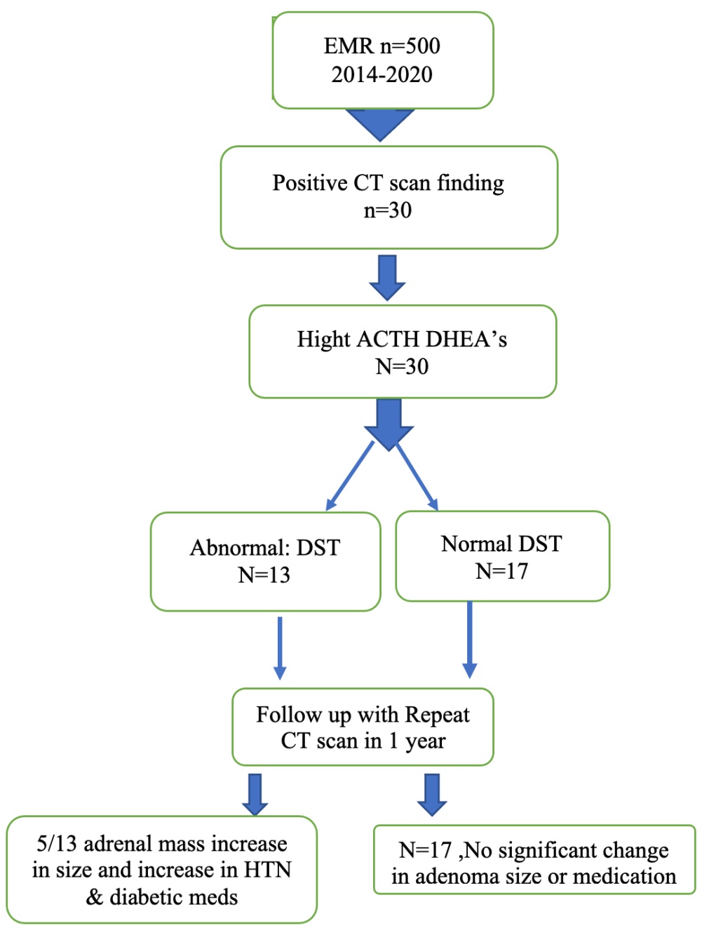 Note: DST: Dexamethasone Suppression Test; EMR: Electronic Medical Records; T2DM: Type 2 Diabetes Mellitus; Meds: Medication; HTN: Hypertension.