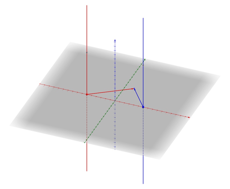 Figure 3. Two parallel oppositely charged lines, one in red and the other one in blue.