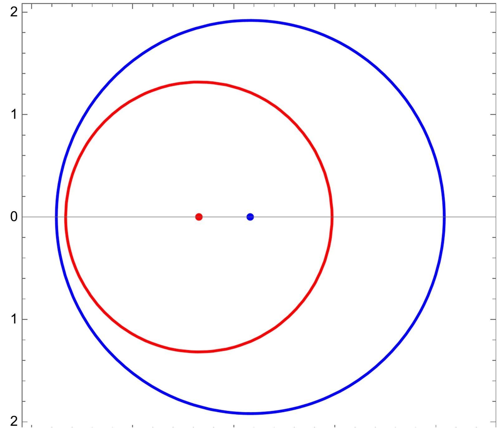 Figure 4. Two equipotential circles are associated with two different potentials.