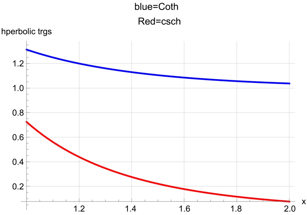 Figure 5. Display of the functional trend of the trig functions in Equation (7), coth and csch.