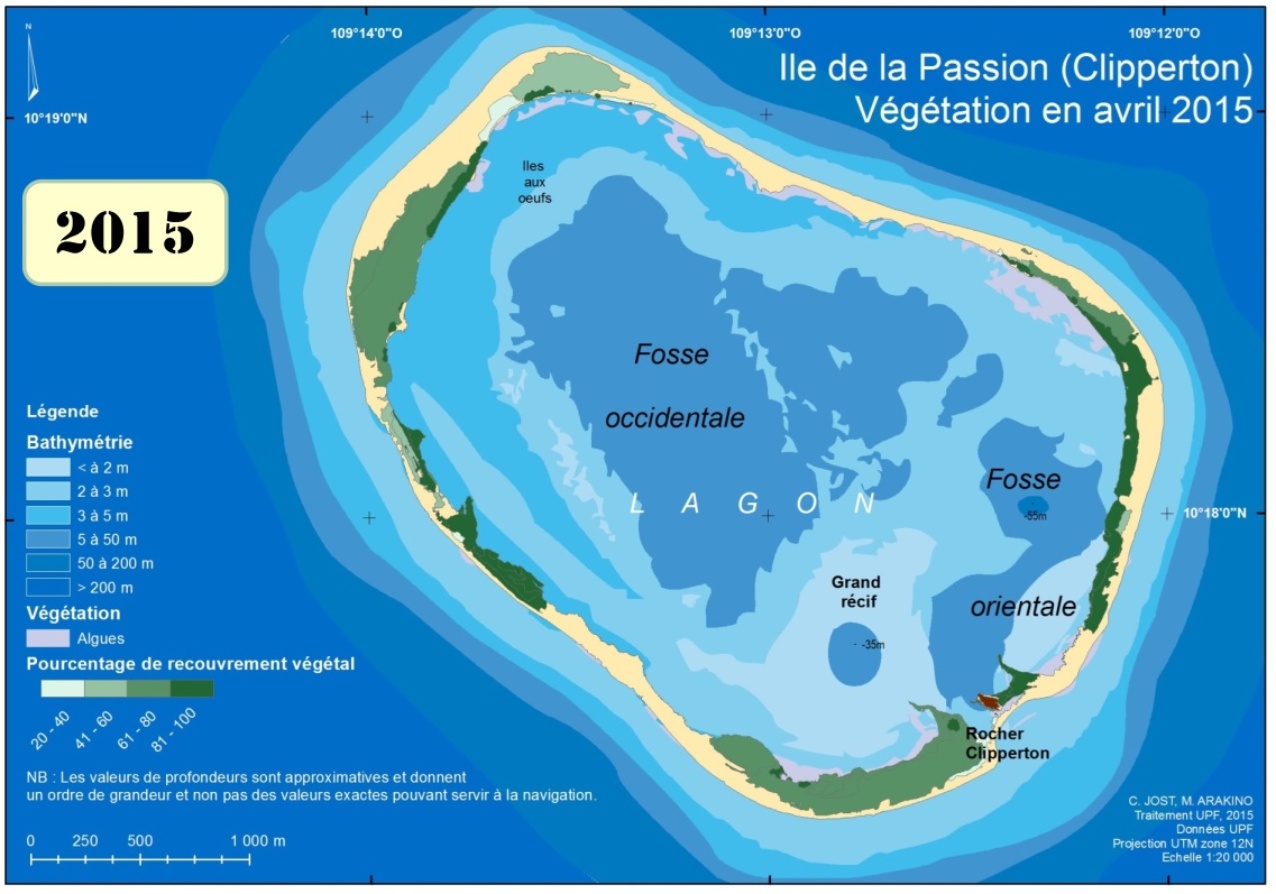 Figure 20. Mapping the vegetation cover of Clipperton atoll following the Passion 2015 expedition.