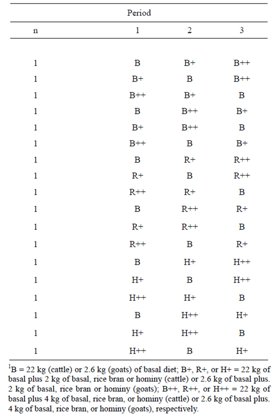 Table 2. Feeding treatment sequences1.