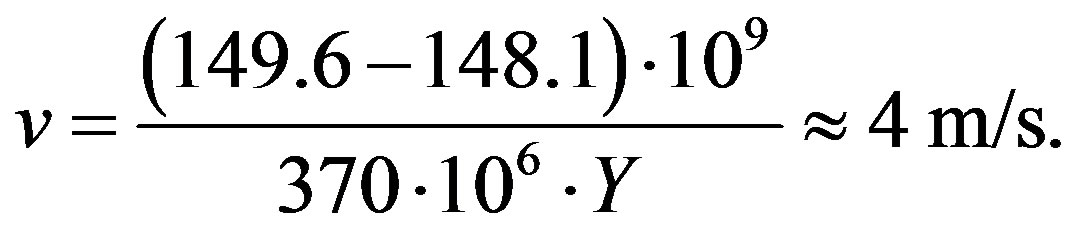 Kepler’s third law enables us to derive that the semimajor axis of Earth’s orbit was only 148.1 million km, i.e. shorter than it is now. From this we find an average recession speed