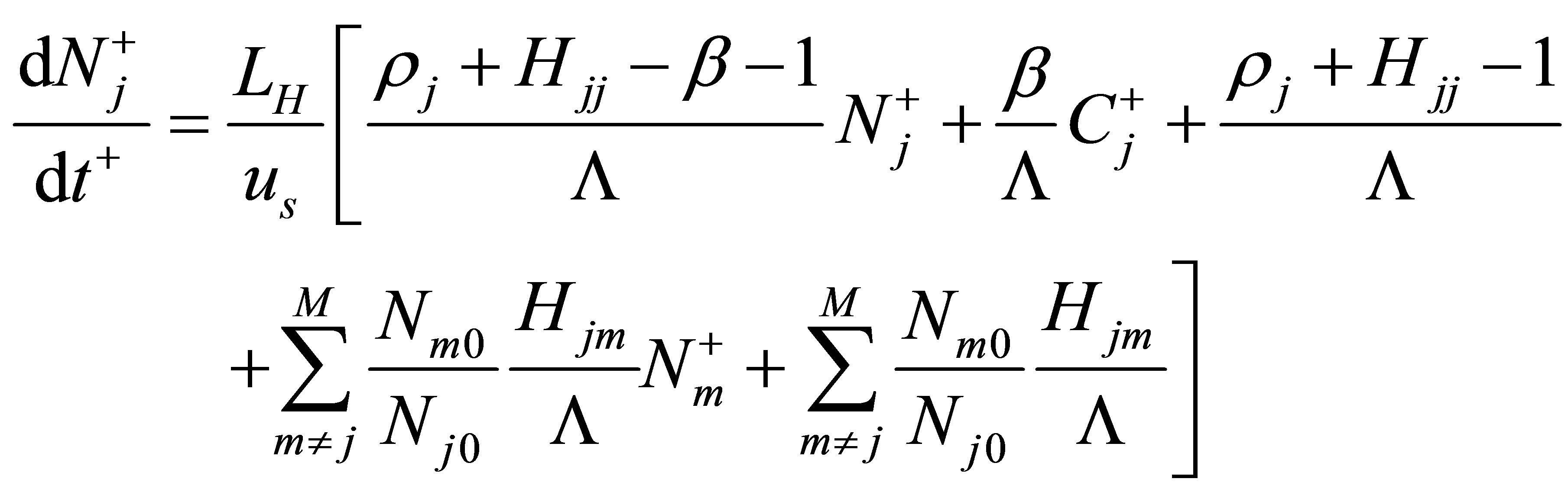 Considering the neutron interactions among subcores illustrated in Figure 1(c), the dimensionless dynamic equation for the neutron density in the j-th subcore can be expressed as in [9]:
