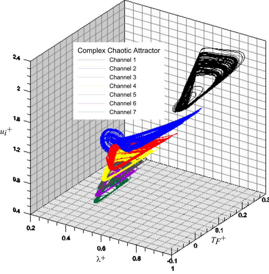 as shown in Figure 6. These 3D phase trajectories for all channels demonstrate that such complex chaotic attrac-