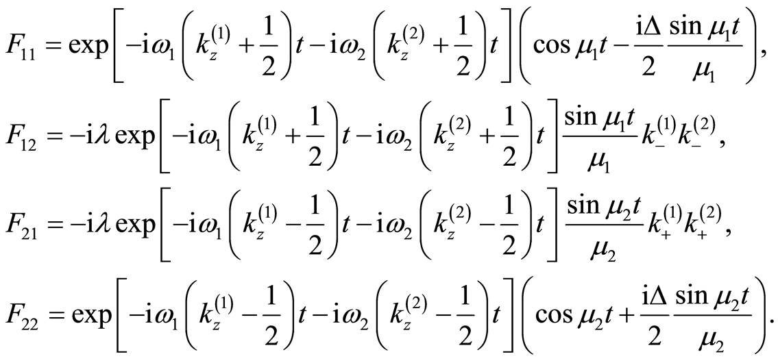 are defined by Equations (26) and (30). With the help of Equations (32), (34), the expectation values for the atomic operators
