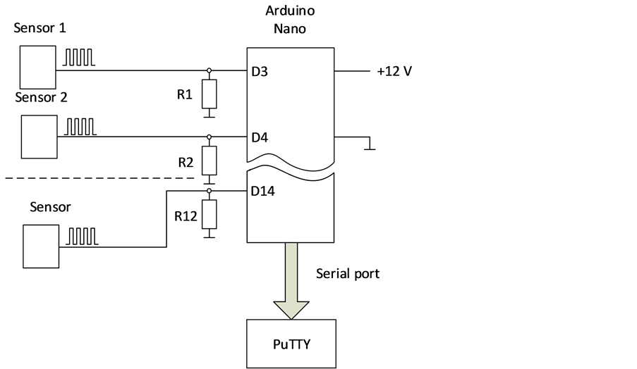 The data was being recorded on a computer simultaneously for each of the sensors with time interval of 1 second as a pulse burst, each of which contained a number of pulses proportional to the angular velocity of the sensor’s rotor.
