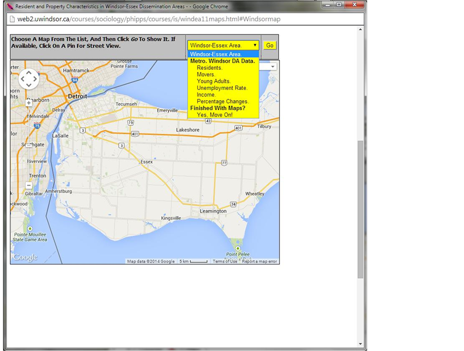 First, the V.3 basemap is Statistics Canada’s shape file of Metropolitan Windsor’s DA digital boundaries that has been uploaded to an online fusion table via the Shape Escape application (documented at