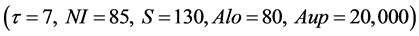, NI = 85, S = 130, Alo = 80, Aup = 20,000.