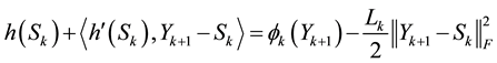 In the accelerated SVT algorithm, an adaptive line search scheme was adopted based on Nemirovski’s technique [8] . For reference purpose, in the following we list the related key steps of the algorithm in [1] :