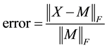 Code Ne-SVT and M-ASVT, based on the Nemirovski’s technique SVT method and our modified algorithm, respectively. Specific problems as follows: similar to the paper [1] , we generate m × n matrices M of rank r by randomly selecting two matrices of ML and MR, with the dimension of m × r and r × n, respectively. Each having independent identically distributed Gaussian entries, and setting