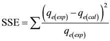 The lowest value of SSE is the best model for the particular system. It is clear from SSE that pseudo-second- order kinetic has lower SSE value than pseudo-first-order kinetic.