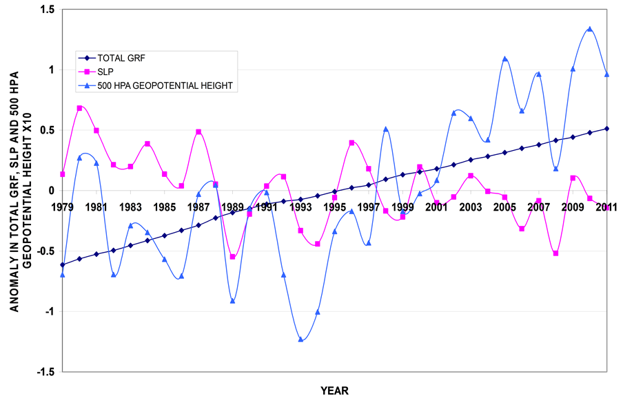 3.2 Study the Relationship between the GRF and Global Annual Weather Elements Variability through the Period (1979-2011)