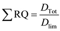 In Tier 1, the risk quotient (RQ) is then obtained by comparing the input media concentrations with the most restrictive EMCL for each radionuclide. These are defined by Equation (1).