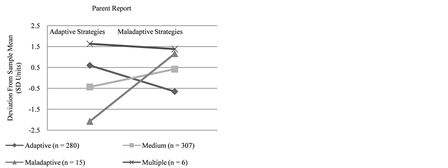 Figure 1. Profile means in adaptive and maladaptive anger regulation for child and parent report four class solution.