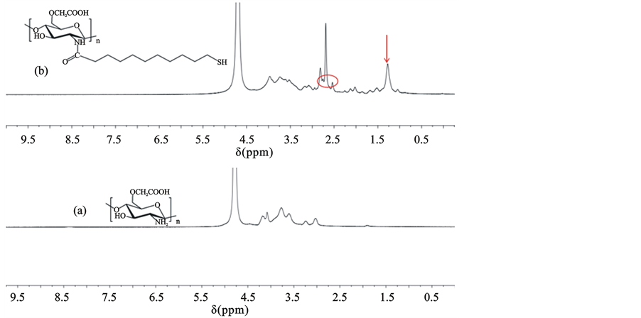Figure 3. 1H NMR spectra of: (a) CMCS; (b) CMCS-MUA.