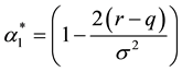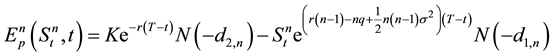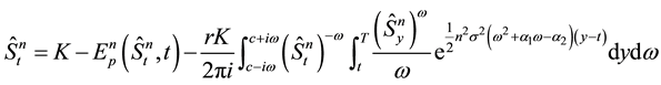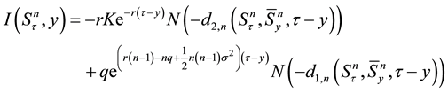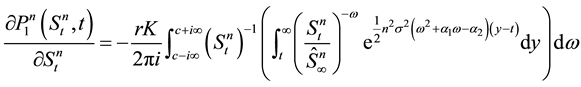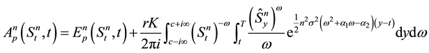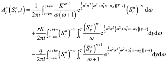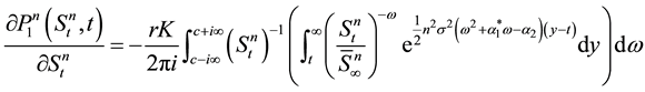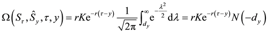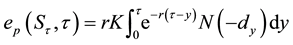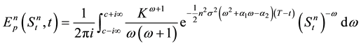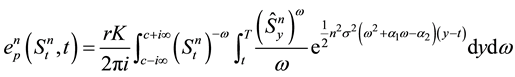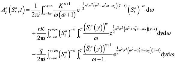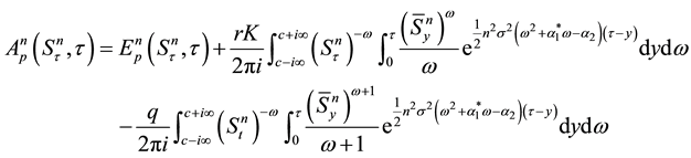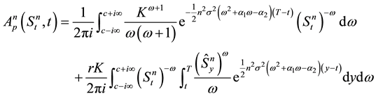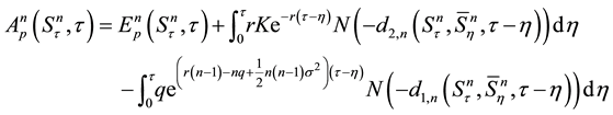 ・ The first term in (20) is the integral representation for the price of the European power put option (stems from the minimum guaranteed payoff of the American power put) which pays no dividend yield (see [4] ). The second term in (20) is called the early exercise premium (the value attributable to the right of exercising the option early) for the American power put option with non dividend yield denoted by