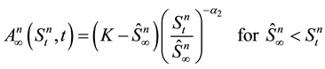 Equation (102) is the expression for the free boundary of a perpetual American power put option. Next, we use (102) to derive an expression for the price of perpetual American power put option
