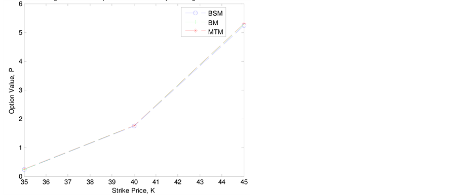 The comparative results analysis of the Mellin transform method (MTM) in the context of Black-Scholes model (BSM), binomial model (BM), recursive method (RM) and Finite difference method (FDM) are shown in Table 8.