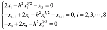 Discretize the nonlinear ODE (15) with the finite difference method. Taking nodes
