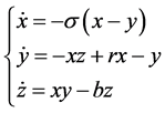 With the Lorenz system parameters set as r = 28, σ = 10, and b = 8/3, this system appears chaotic. We produced 3000 data points with this chaotic system that were used to construct a chaotic time series.