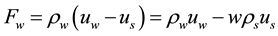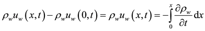as the water and solid phase velocities along x, mass balance equations are written [36] [37]