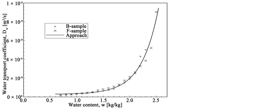 The water transport phenomenon is considered to be governed by the first Fick’s law, which relates the water mass flux