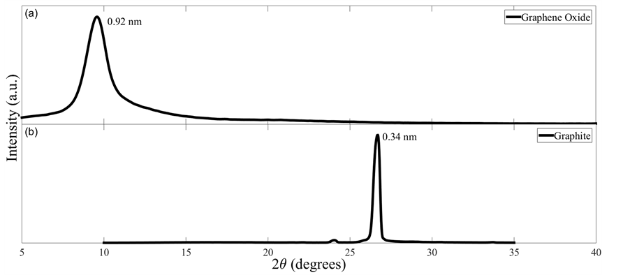 Figure 3. X-ray diffraction spectra of graphene oxide and graphite.