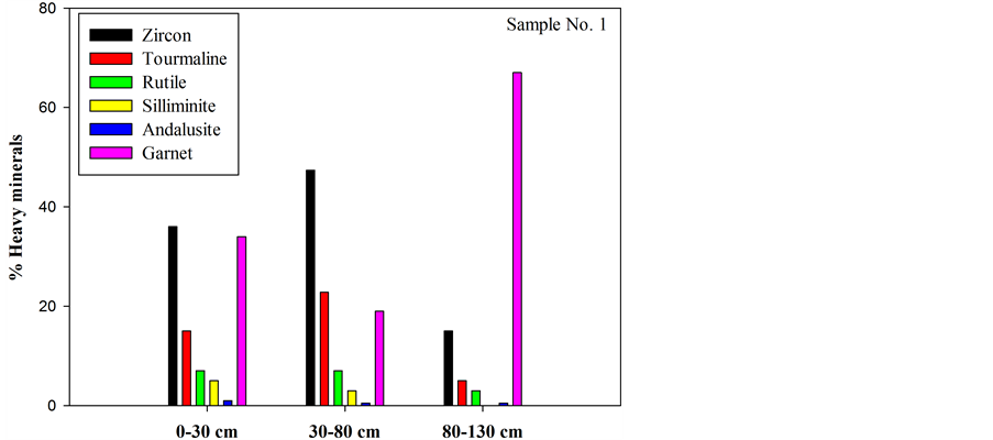 Figure 2. Variation of percent heavy minerals with depth in the sample 1.