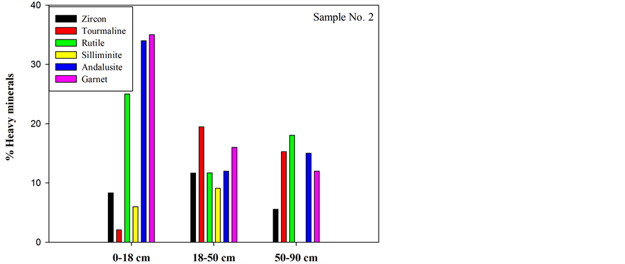 Figure 3. Variation of percent heavy minerals with depth in the sample 2.