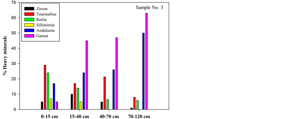 Figure 4. Variation of percent heavy minerals with depth in the sample 3.