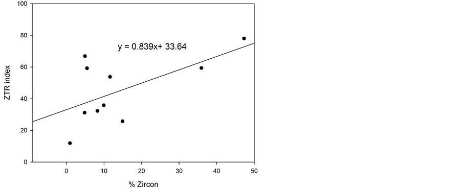 Figure 8. Regression of zircon percentage with ZTR index of all samples.