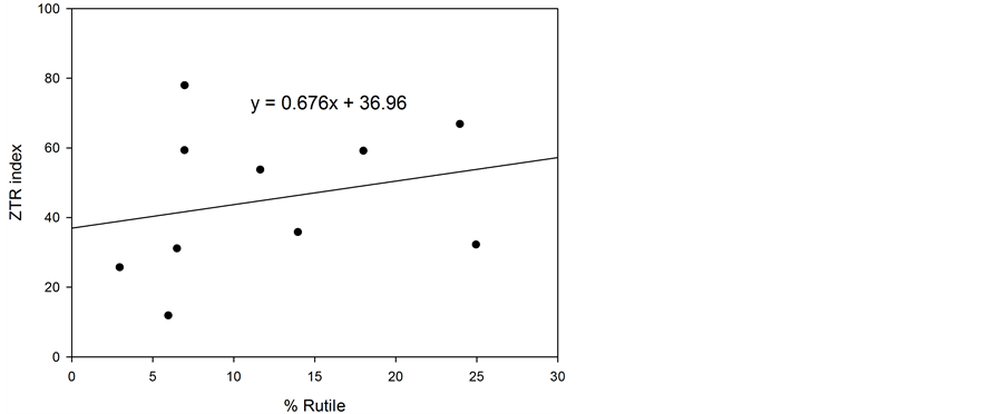 Figure 10. Regression of rutile percentage with ZTR index of all samples.