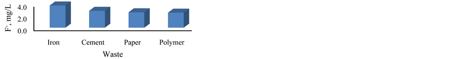 was detected in the paper effluents, Figure 4. Fluoride was released in the roasting of iron, cement, paper and polymer materials, and its elevated concentration was observed in the iron effluents, may be due to contamination of the minerals and coal with fluorites, Figure 4.