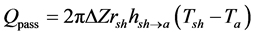 where Ta (ambient temperature on ˚C), Tsh (shell temperatures in ˚C) and εsh = 0.5 (emission shell) and σ = 5.6697 ´ 10−8 W/m2・˚C4. As to the equation (16) deduced