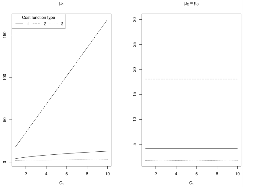 is increasing for these cost functions. For cost functions of type 1 we see from Figure 24 that the optimal