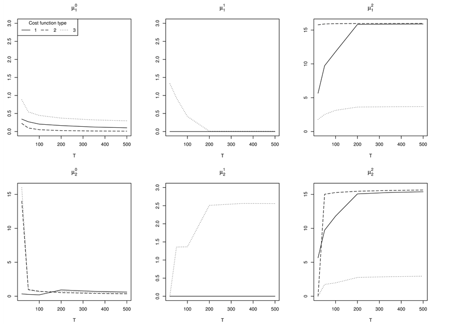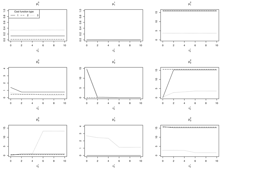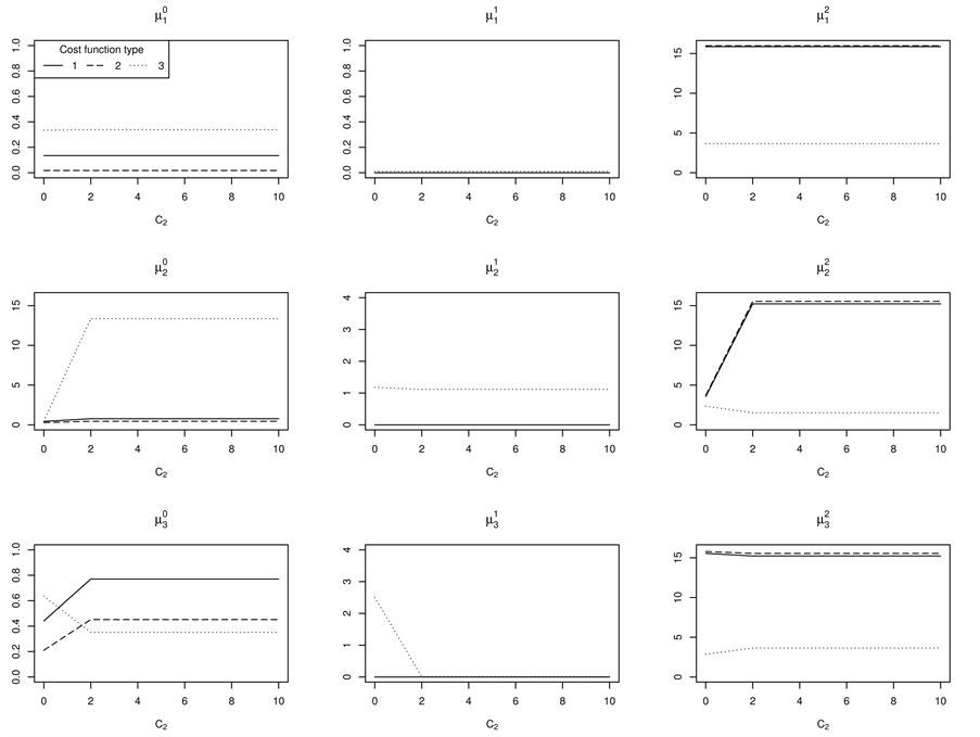 are shown in Figure 25. We see that the results for cost functions of type 2 are constant. Furthermore, for cost functions of type 1 and 3, component 2