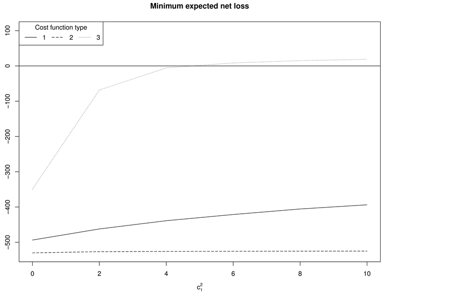 has little effect on the minimal expected net loss. This is seen in Figures 20-22 where the minimal expected net loss with cost functions of type 2 seems to be constant and the result for cost functions of type 1 and 3 is increasing slightly for small