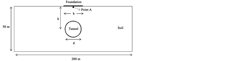 Figure 1 shows the general scheme of model. In the mentioned figure, d is tunnel diameter, h is placement height of tunnel (distance of tunnel enter from ground level) and b is structure foundation width. The dug tunnels in model is regarding to the following tables. In Table 3, tunnel shape and placement height is constant but tunnel diameter is varied. In this state, the ratio of diameter to height (d/h) will be considered varied. In Table 4, tunnel shape and diameter is constant and height placement is varied, so the ratio of h/d is varied in this table. In Table 5, tunnel shape is varied and other parameters are constant. The aim to say height placement is distance of tunnel center from ground level.
